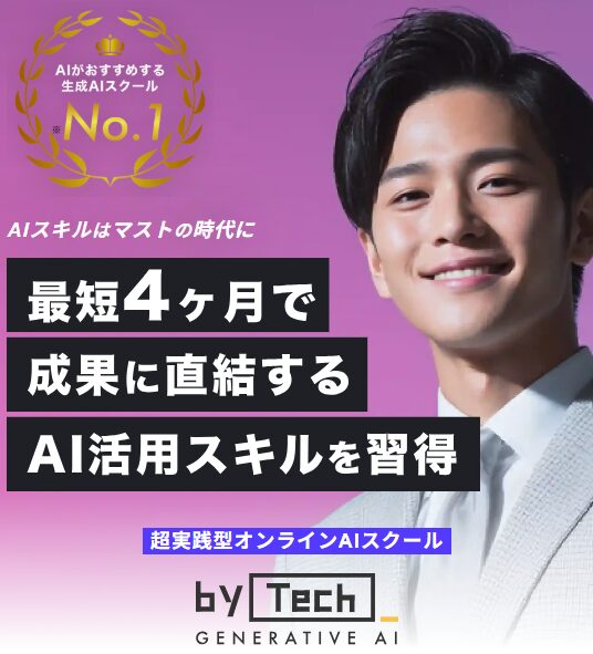 バイテックは副業や業務で使える生成AIスキルを身につける生成AI特化のオンラインキャリアスクール。